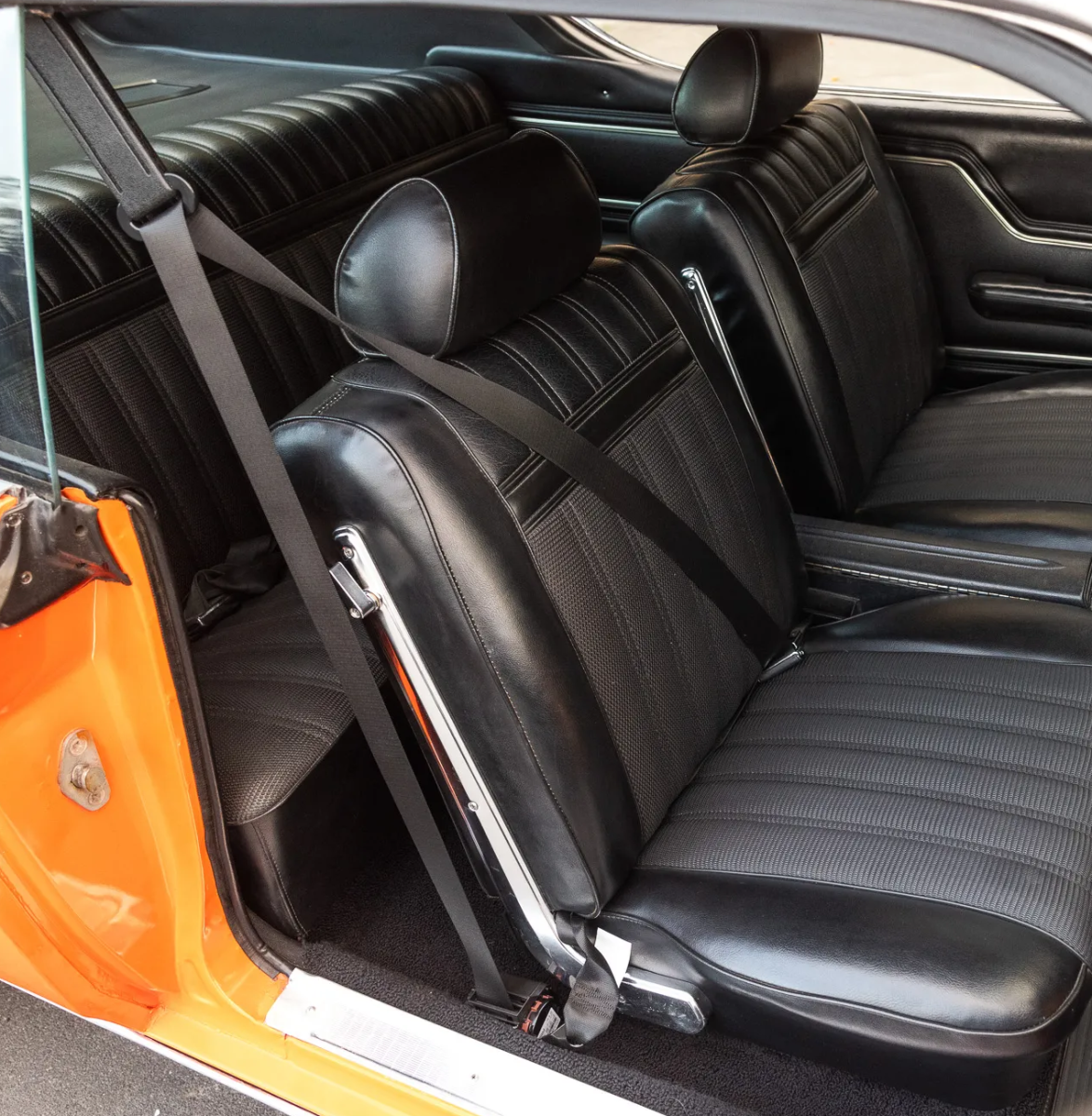 Seatbeltplanet.com's™ 1971-1976 Ford Torino, Driver or Passenger Seat Belt. 3 Point Retractable Lap & Shoulder Seat Belt Kit with All Metal Push Button Buckle